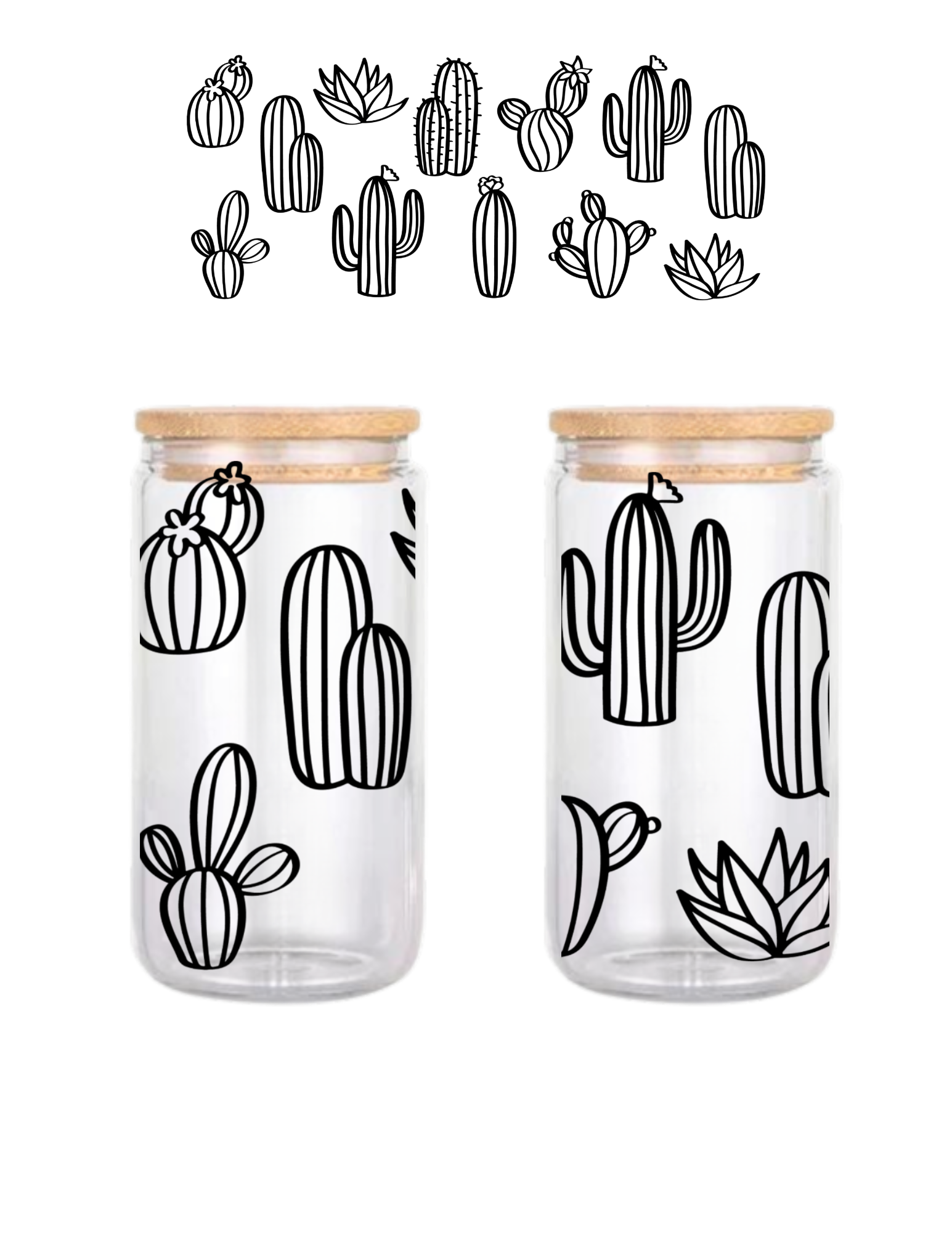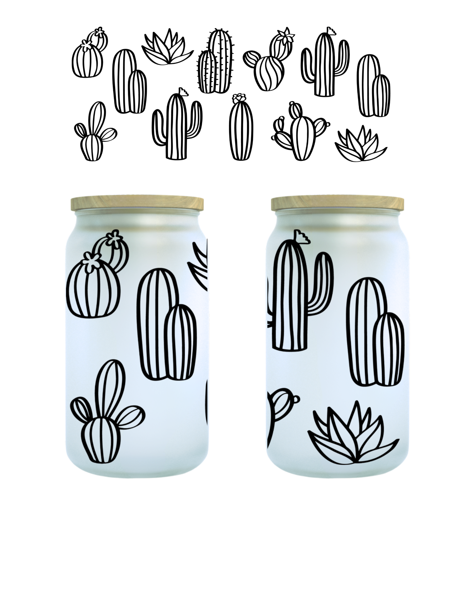 Cactus Drawing 16oz Glass Can (Clear or Frosted)